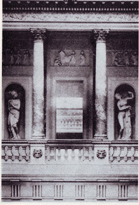 The poem then goes on to describe the arched niches between the columns and windows. These were as yet empty but: